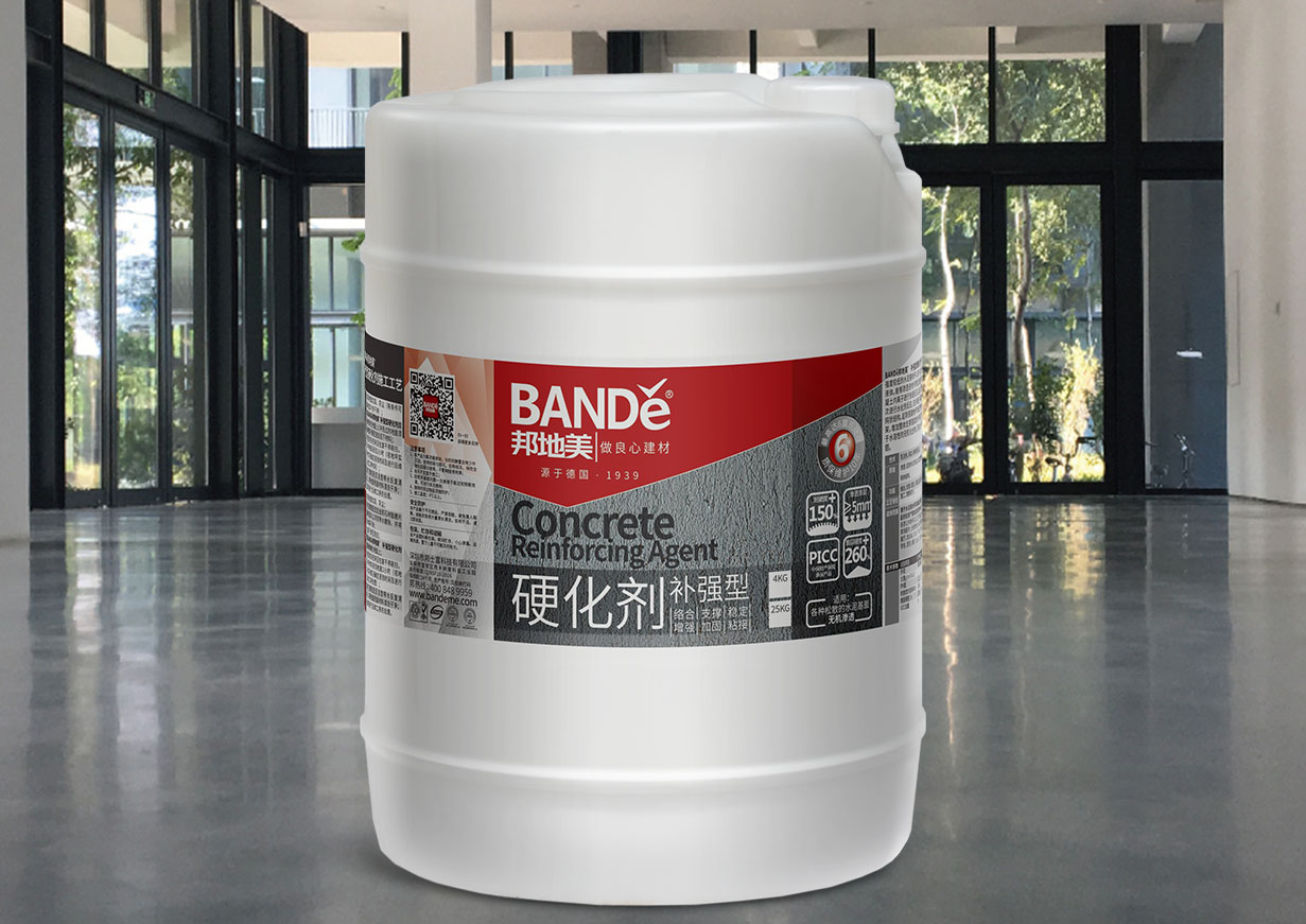 BANDě邦地美® 補(bǔ)強(qiáng)劑是我公司在多年地坪處理經(jīng)驗(yàn)基礎(chǔ)上,經(jīng)反復(fù)實(shí)踐驗(yàn)證,最終定型的一款專(zhuān)門(mén)針對(duì)強(qiáng)度較低的地坪硬化產(chǎn)品,該產(chǎn)品為無(wú)色、乳白色液體,能夠滲透進(jìn)水泥基地坪表面面層中,與混凝土內(nèi)離子進(jìn)行快速反應(yīng),促進(jìn)混凝土再次水化熱反應(yīng),在多維空間建立立體網(wǎng)狀結(jié)構(gòu),起到搭建地坪表面整體結(jié)構(gòu)框架,增加整體支撐強(qiáng)度的作用。