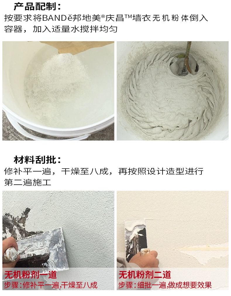 適用噴涂、刮批在新舊混凝土表面并與混凝土咬住,融合為一體,使得建筑物內外墻起到裝飾作用,同時改善建筑物表面疏水性等特性的無機粉體。