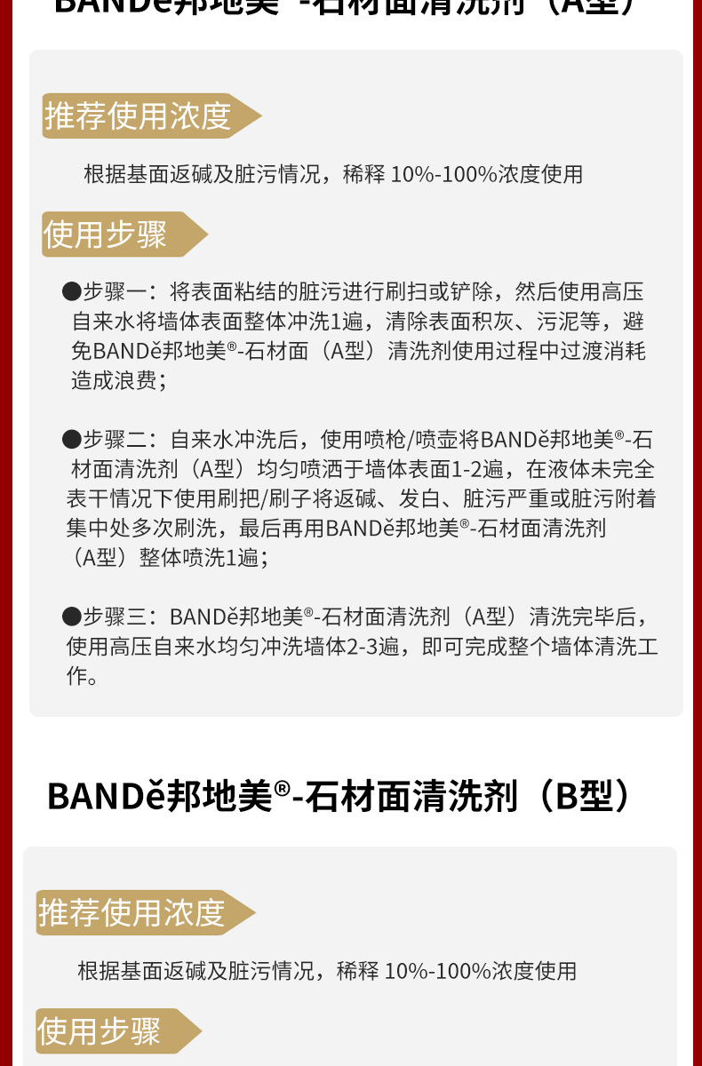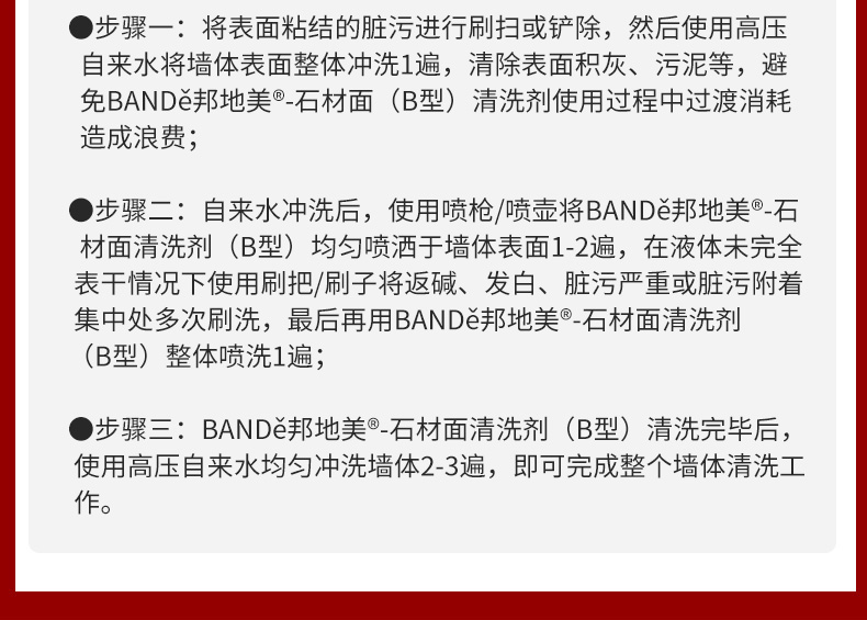 功能說明:清洗不同基面的返堿、發白以及各類污垢。
